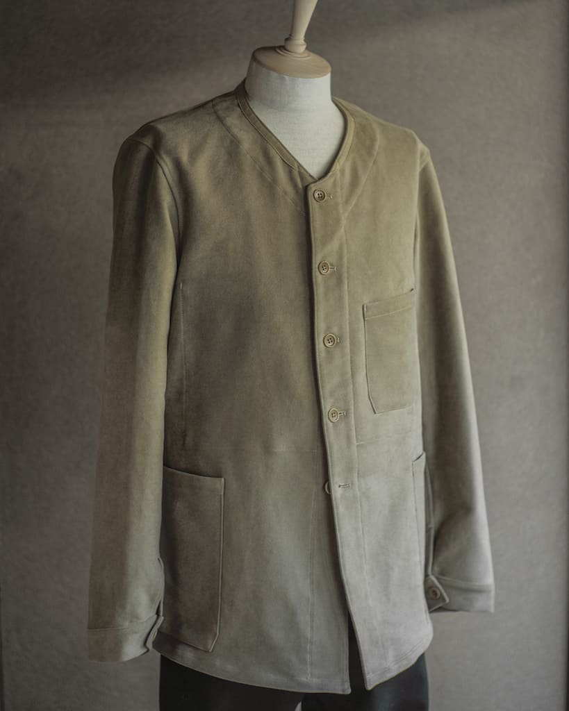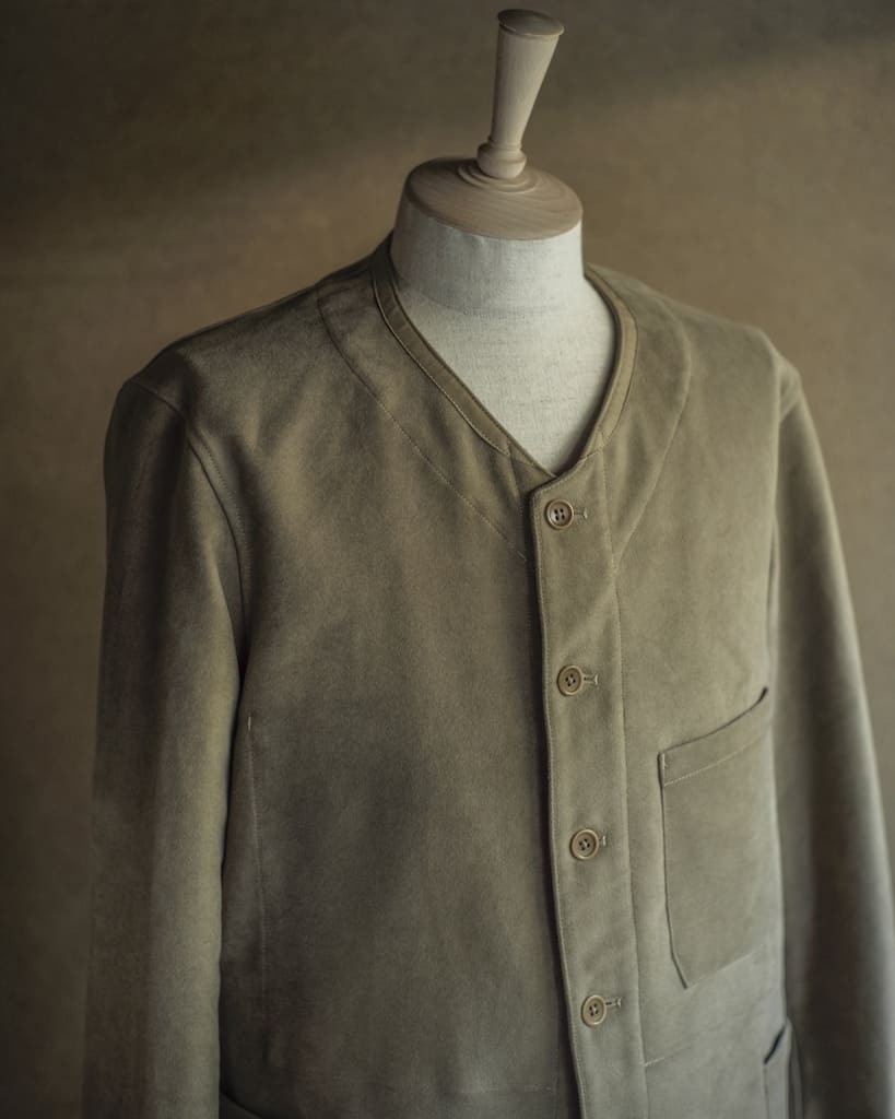エプロンのように着丈が長く、荷物を運ぶ際に邪魔にならないようにと考慮されたポケットの位置など、当時の"用の美"が反映された、アナトミカらしい唯一無二のデザインをしています。